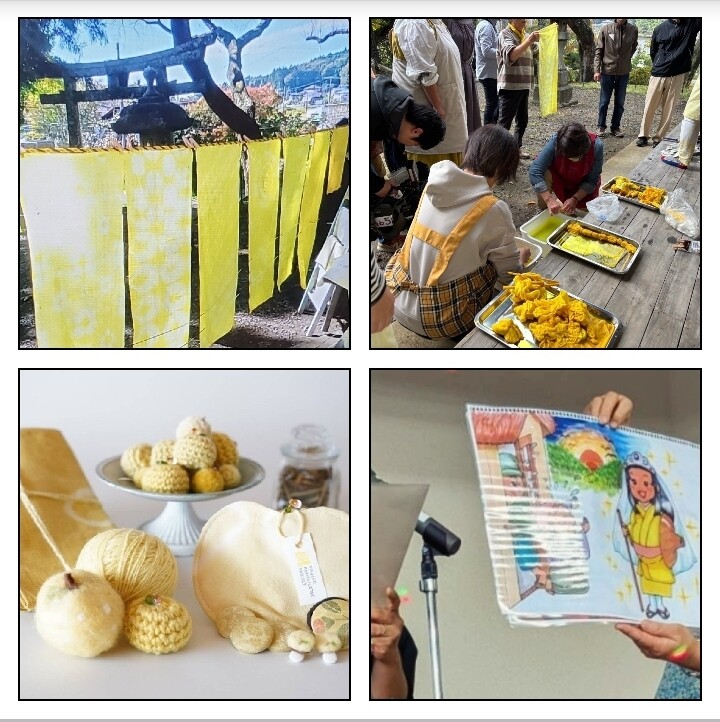 利府町の染殿神社に伝わる刈安染めや歴史の普及活動と共に、様々な人々と協力し、生活の楽しみや、刈安染めを通して環境について考えるなど、利府町での生活に彩りを添えるきっかけ作りをしています。